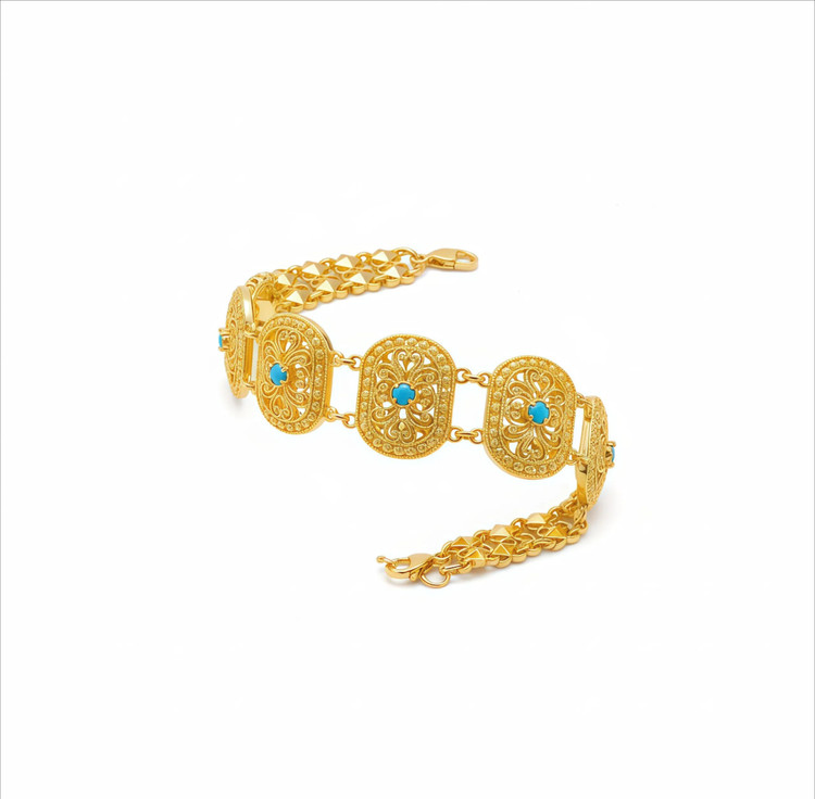 دستبند زیبا و سنگین با طراحی فوقالعاده پرجزئیات فیلگرین و میناکاری سنتی ایرانی.