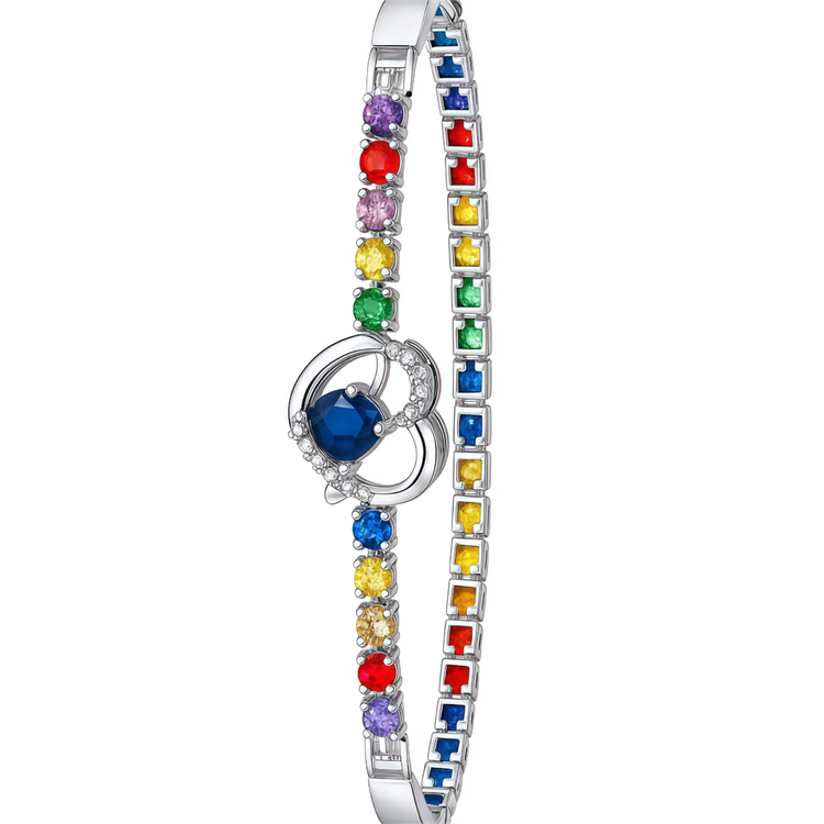 دستبند تنیسی جواهری قلب یاقوت کبود رنگینکمانی