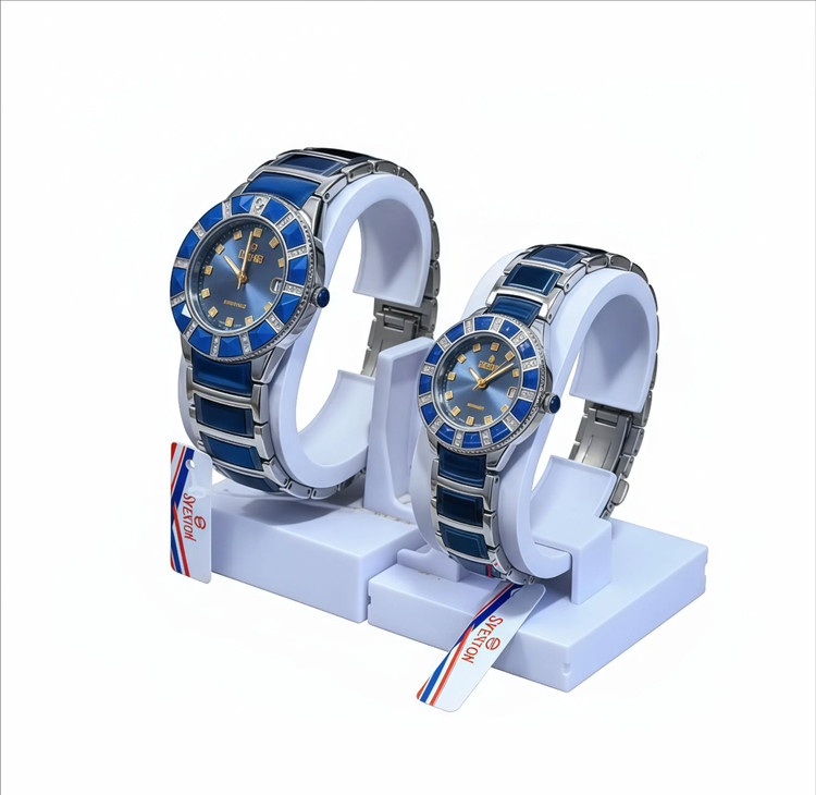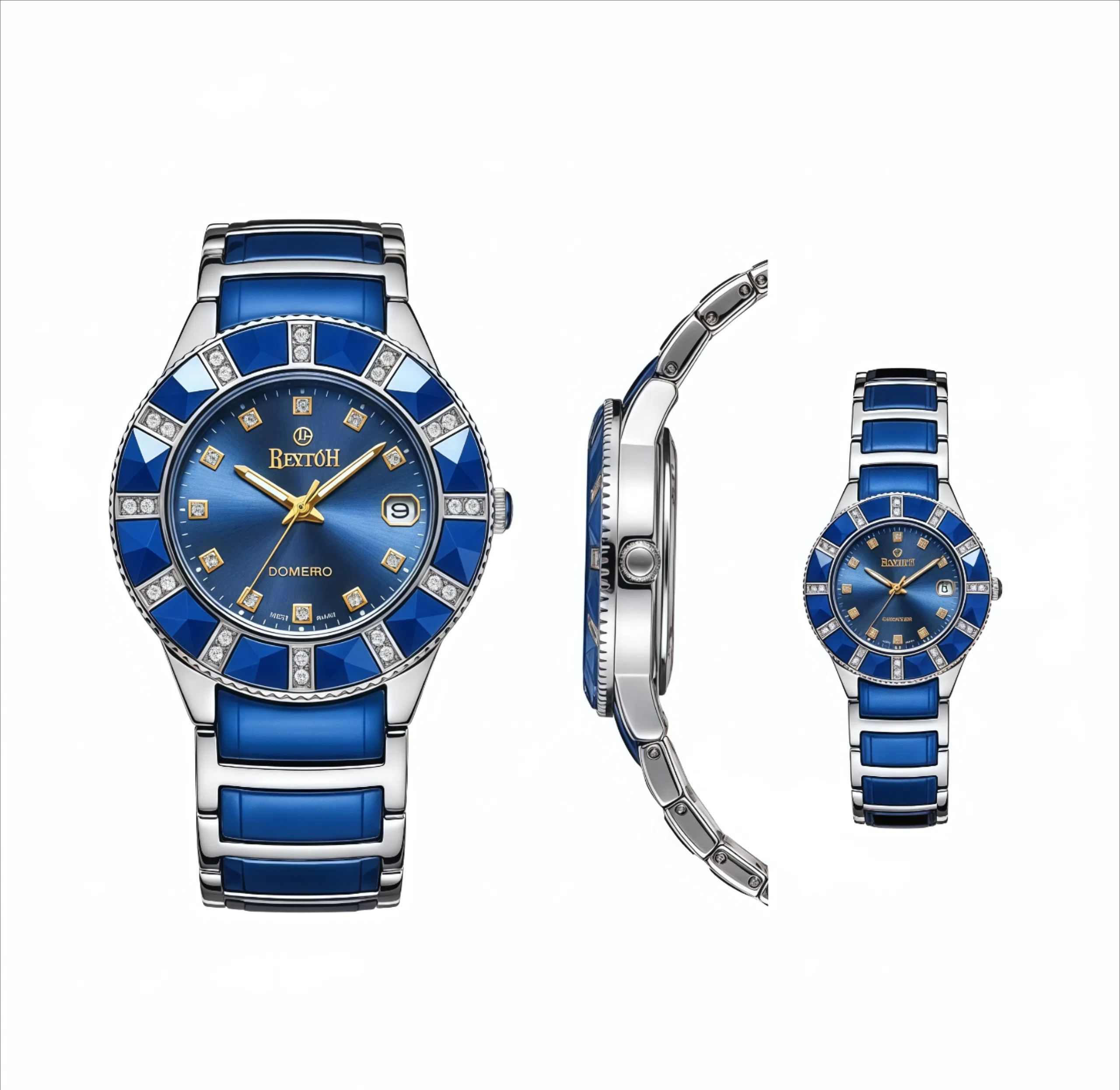 «ساعت اسپیرین اوشن دایموند، شاهکاری از ترکیب زیبایی دریایی و درخشش الماس. بدنه و بند تماماً از استیل ضدزنگ ۳۱۶L با روکش PVD آبی عمیق و نقرهای براق ساخته شده و بزل چرخان آن با نگینهای یاقوت آبی و برلیانهای اصل تراش برلیان پوشیده شده است.