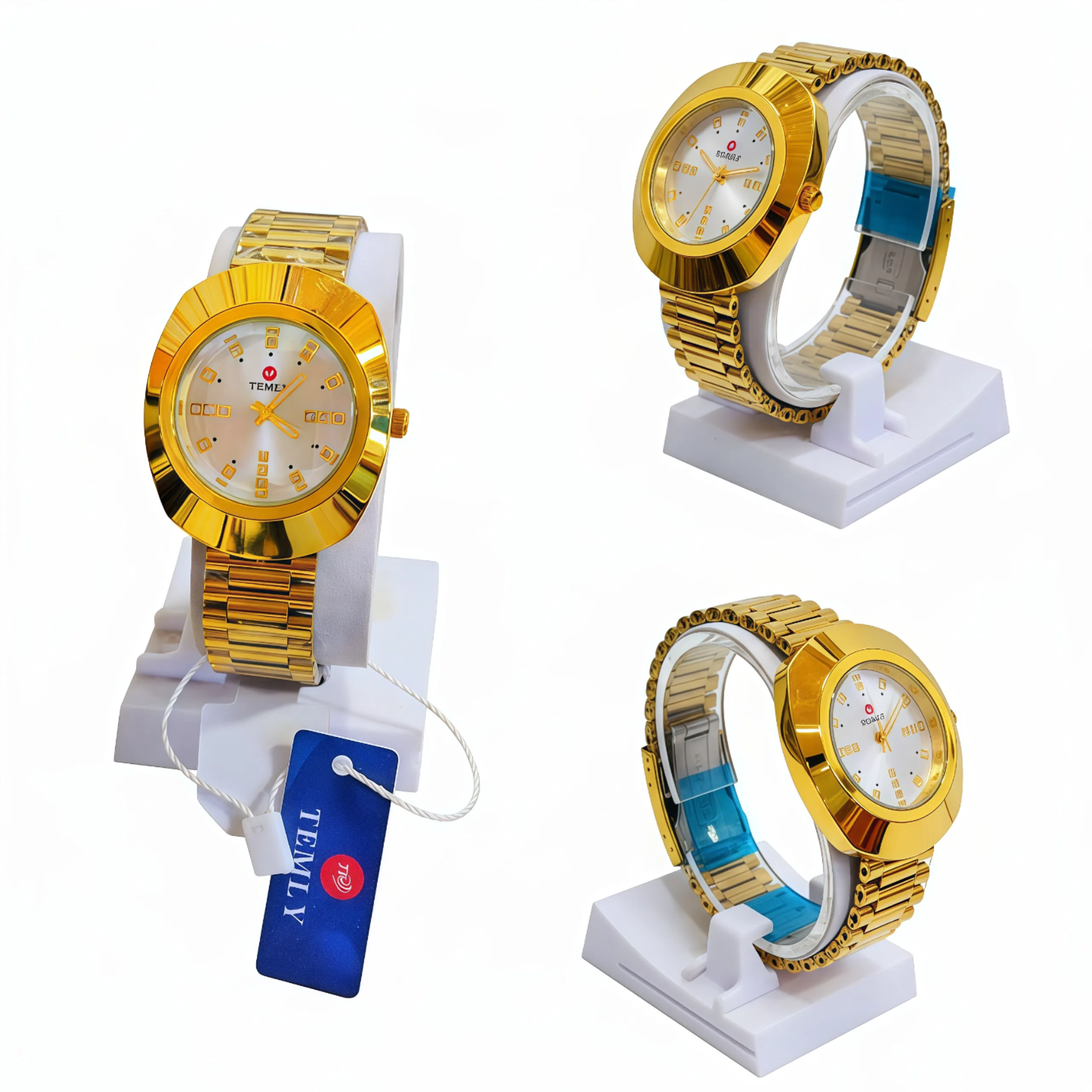 ساعت مچی مردانه تملی TEMLY تمام طلایی صفحه سفید