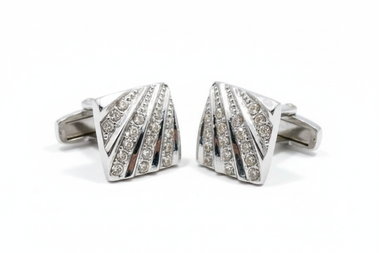 دکمه سردست لوکس نقرهای نگیندار مدل الماسشکاری