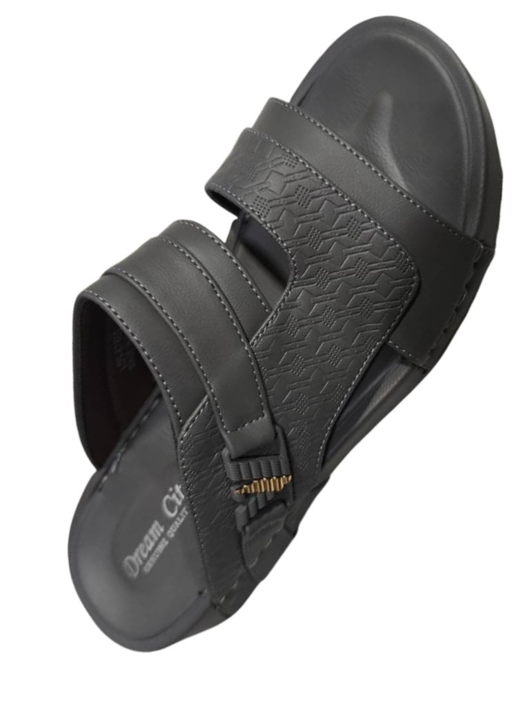 دمپایی دریم سیتی، با طراحی الهامگرفته از الگوهای سنتی شرقی و بافت هندسی ظریف، ترکیبی بینقص از زیبایی کلاسیک و راحتی مدرن است. بندهای دوگانه پهن چرم مصنوعی مشکی با الگوی لوزیدار، حمایت عالی از پا را بدون هیچ فشاری فراهم میکند – ایدهآل برای روزهای گرم تابستانی، نمازخانه، سفر یا استفاده روزمره در خانه. کفی EVA نرم و انعطافپذیر با لبههای طلایی براق، تعادل و گردش هوای طبیعی را تضمین میکند، در حالی که دوختهای محکم و سگکهای طلایی دوام و شیکپذیری را افزایش میدهد. ضدآب سطحی و مقاوم به سایش، دریم سیتی نه تنها یک دمپایی، بلکه نمادی از کیفیت "Genuine Quality" است. ست کنید با لباسهای سنتی یا کژوال – هدیهای عالی برای مردان با سلیقهای اصیل