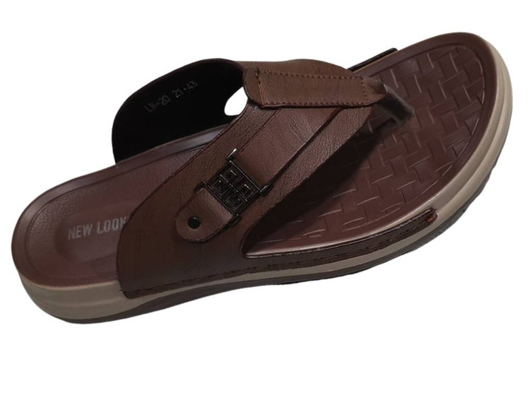 دمپایی مردانه نیولوکس New Looks -نیولوکس با بند تکچرمی قهوهای