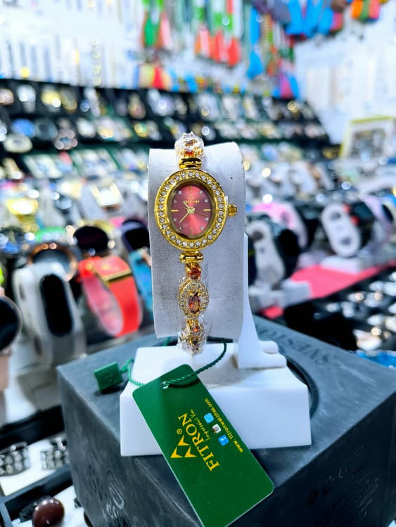 ساعت مچی فیتون (Fitron) اصل، یک شاهکار جواهرنشان با صفحه شرابی (Burgundy) و بدنه طلایی پر از نگین! این مدل خاص با بند جواهری گلدار و کریستالهای رنگارنگ، ترکیبی بینظیر از ساعت و دستبند لوکس است. مناسب برای بانوانی که میخواهند در هر لحظه بدرخشند – از قرارهای عاشقانه تا مجالس شبانه.