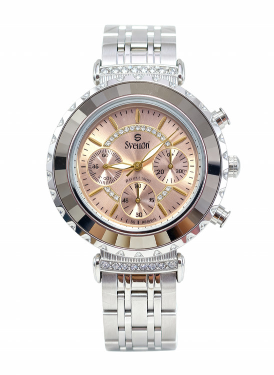زنانه SWSTON Chrono Rose با طراحی خیرهکنندهاش، ترکیبی بینقص از مدرنیته و سنت لوکس را به مچ شما هدیه میدهد. این مدل تکموتوره (کوارتز دقیق ژاپنی) با ظاهری سهموتوره (طراحی کرونوگراف الهامگرفته از ساعتهای اسپرت لوکس)، حسی از قدرت و زیبایی را القا میکند – بدون پیچیدگیهای اضافی، فقط دقت و درخشش خالص.