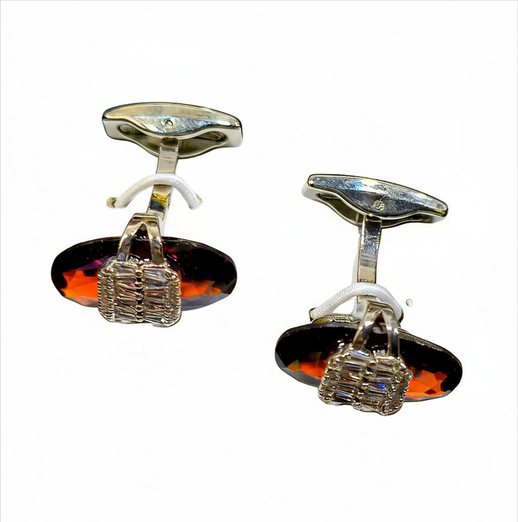 طراحی و ظاهر: ۸ کریستال بگت سواروسکی + چنگکهای نقرهای قاب بیضی شعلهمانند با جزئیات حکاکی و انعکاس آتشین