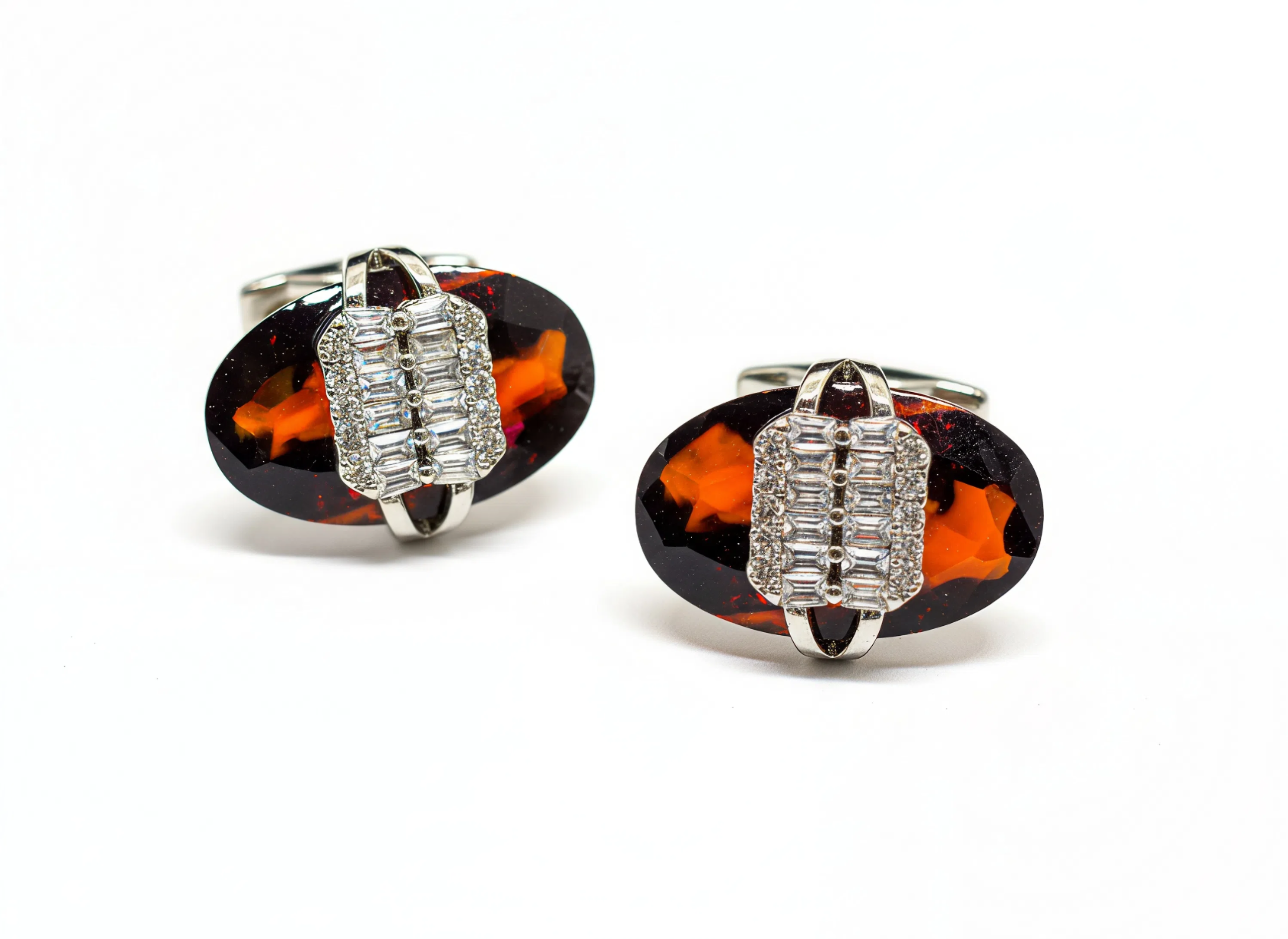 طراحی و ظاهر: ۸ کریستال بگت سواروسکی + چنگکهای نقرهای قاب بیضی شعلهمانند با جزئیات حکاکی و انعکاس آتشین