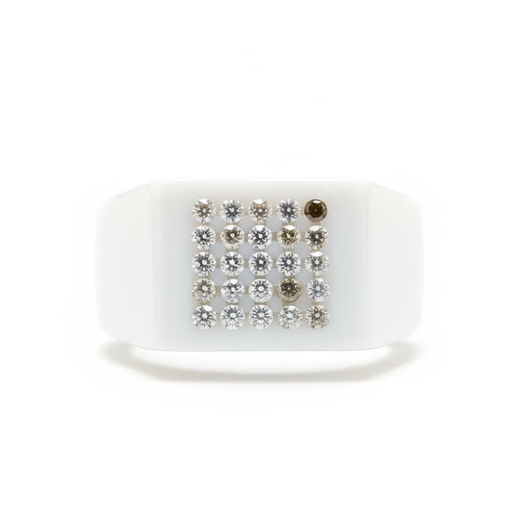این انگشتر پیشرو در طراحی مدرن، از سرامیک سفید هایتک (high-tech ceramic) با مقاومت بالا در برابر خطوخش ساخته شده و سطحی مات و ابریشمی دارد که با هیچ فلزی قابل مقایسه نیست