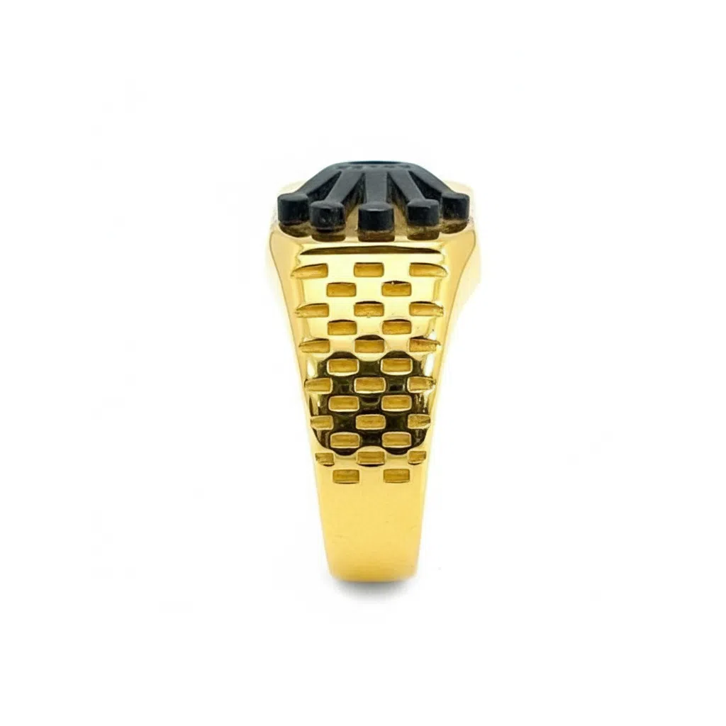 این انگشتر مردانه با الهام از برند افسانهای رولکس طراحی شده و نماد قدرت، موفقیت و کلاس اجتماعی است. تاج مشکی مات با حکاکی دقیق ROLEX بر روی بدنه طلایی براق، جلوهای بینظیر و سلطنتی به دستان شما میبخشد.