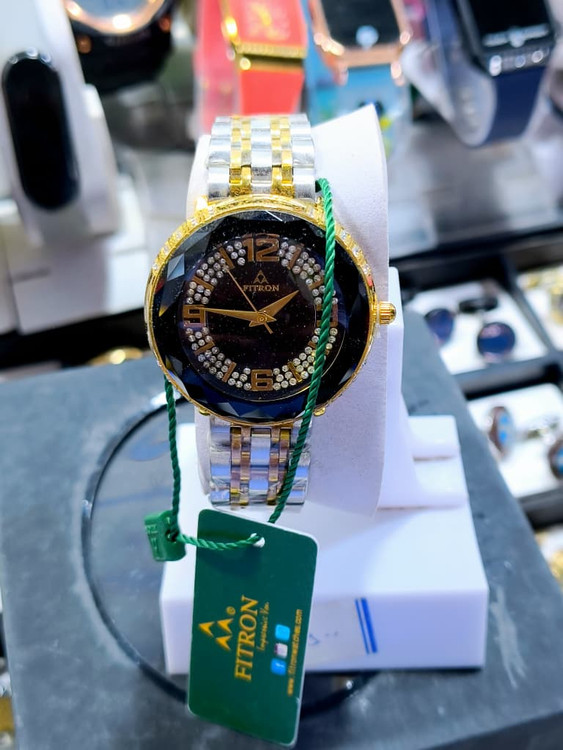 ساعت مچی زنانه Fitron 6239L با صفحه مشکی براق و حاشیه نگیندار کریستالی، ترکیبی بینظیر از لوکس، مد و عملکرد است.